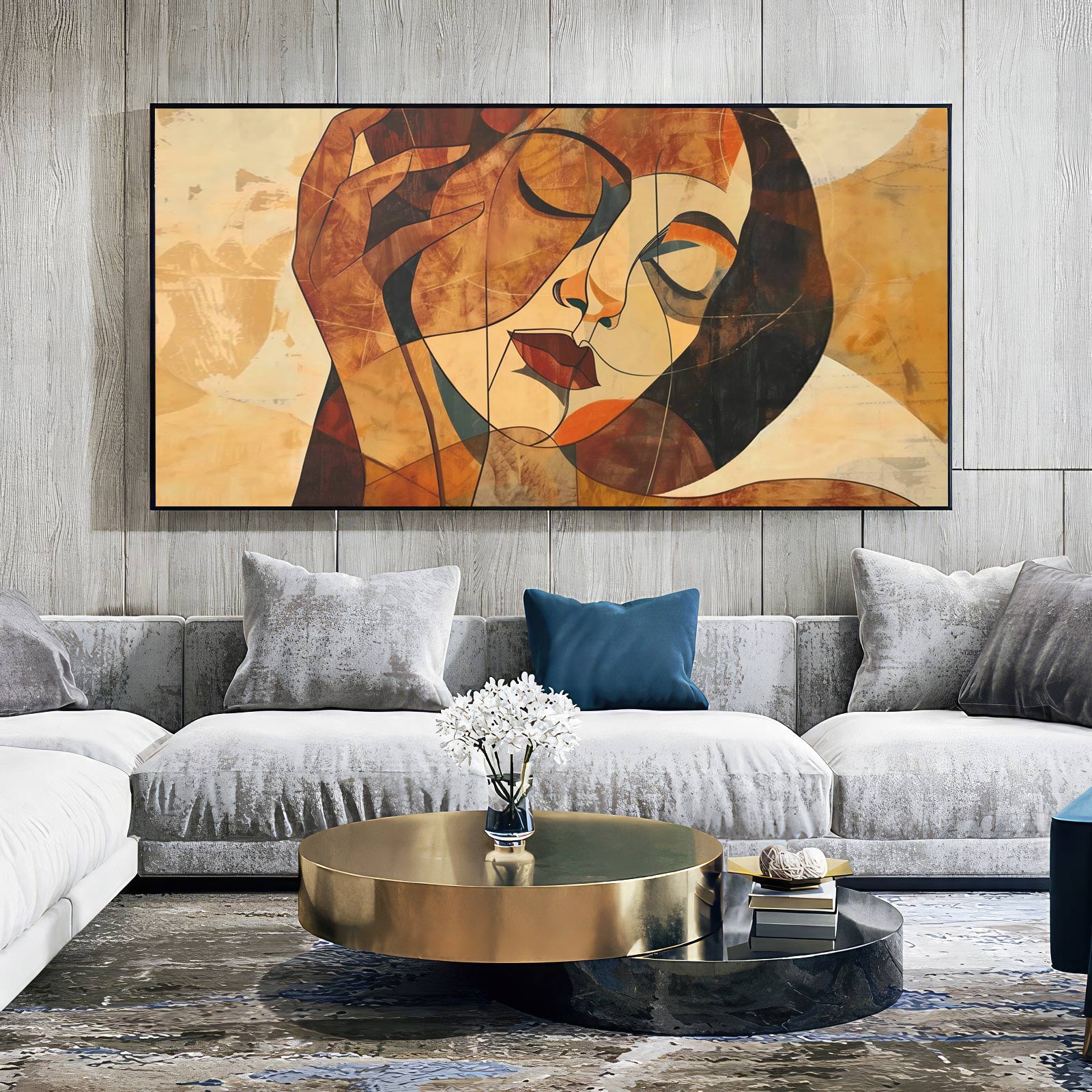 The abstract lines give it a modern look, while the emotion it carries brings warmth and personality to any room.